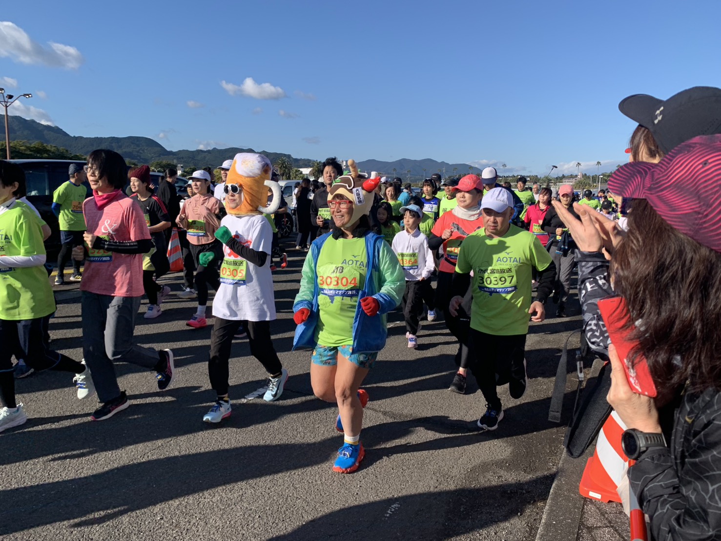 当日は晴天に恵まれた一方、時折風が強く吹く場面もありましたが、ランナーは沿道からの温かい声援や多くのボランティアの支えのもと、市内中心部から太平洋・青島を望むトロピカルロードを駆け抜けました。