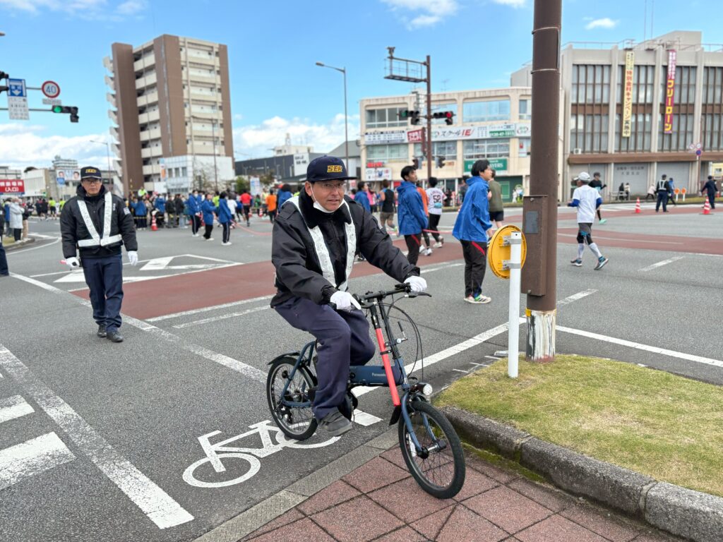 コース沿道や交差点、駐車場など80カ所に133名、運動公園内の雑踏警備・駐車場誘導など32カ所に42名を配置し、総勢175名体制で安全確保にあたりました。