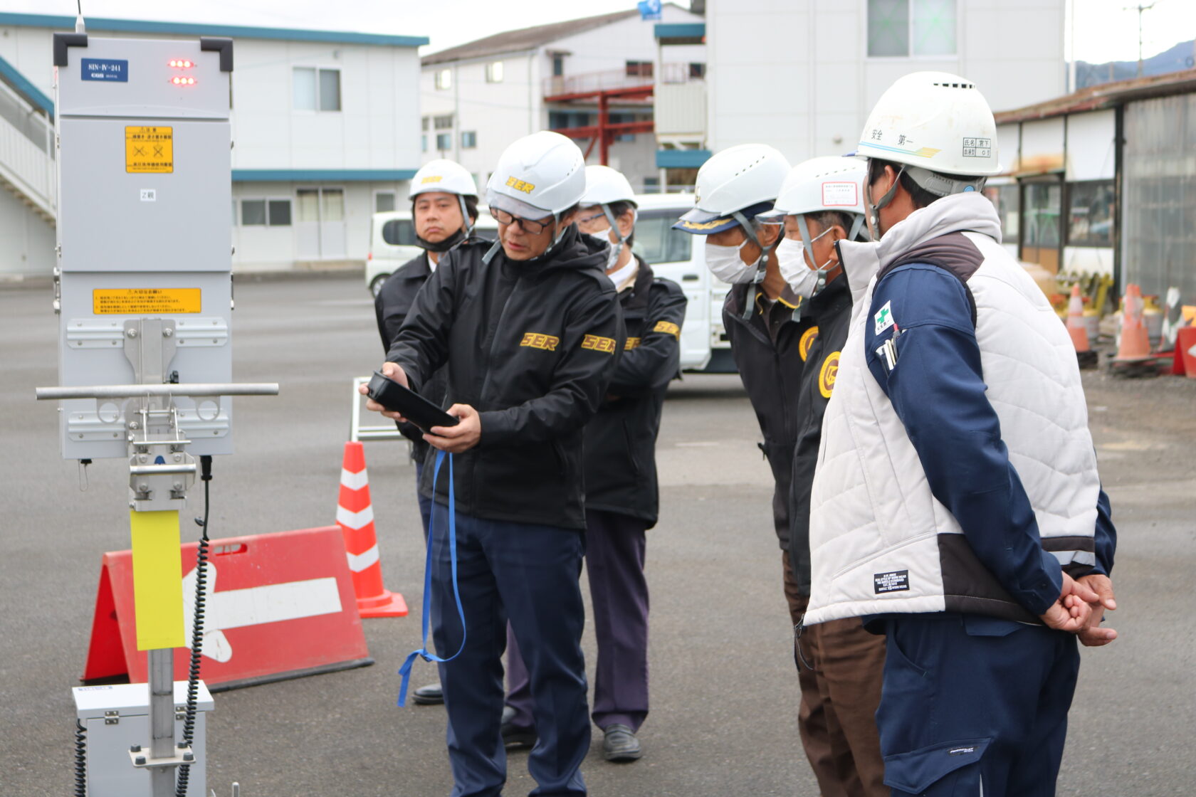 当日は、大洋建設株式会社様のご協力のもと、実際の工事現場を想定した環境で設置・操作を行い、警備スタッフや工事関係者とともに、実運用を見据えた検証を行いました。